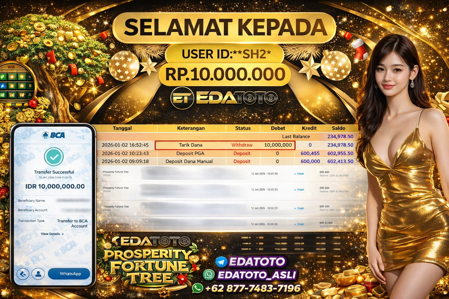 Selamat Kepada Pemilik user ID : **SH2* Hari/Tanggal :kamis/ 12, Januari 2026 Jackpot : Rp. 10,000,000 JT Withdraw : 10,000,000 . . .