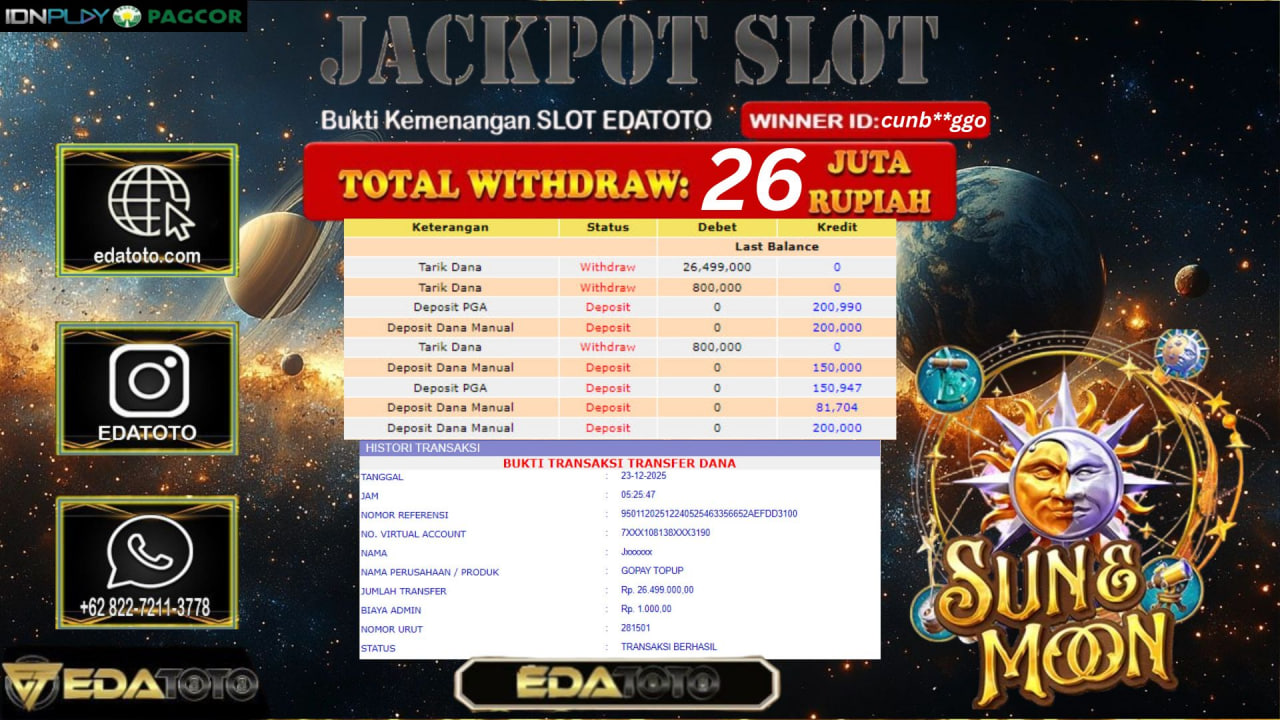 Selamat Kepada Pemilik user ID :NIK** Hari/Tanggal :kamis/ 26, Desember 2025 Jackpot : Rp. 55,100,000 JT Withdraw : 55,100,000 JT . . .